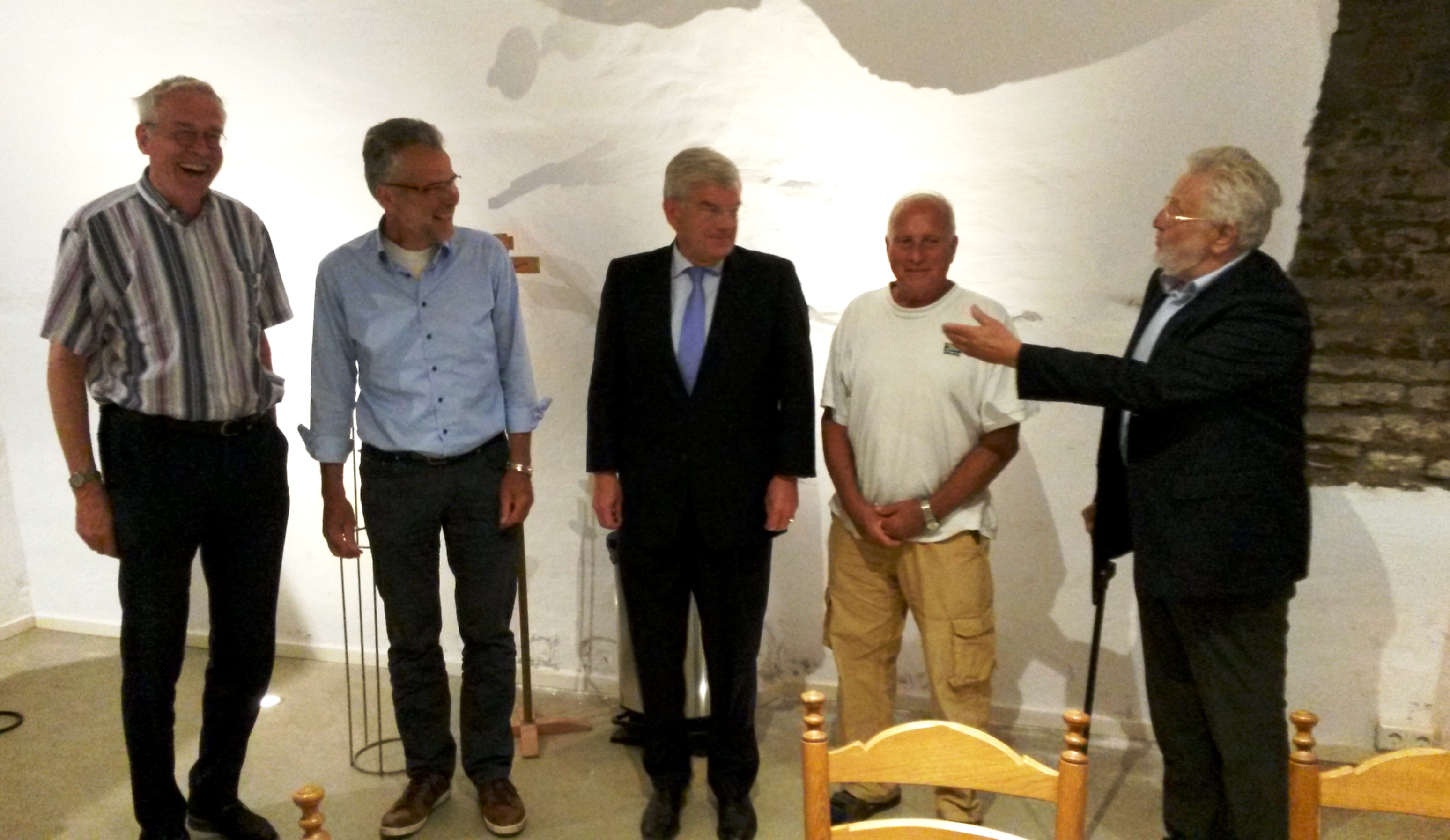 Van links naar rechts; Bart, Wim, burgemeester, Joop, Jan