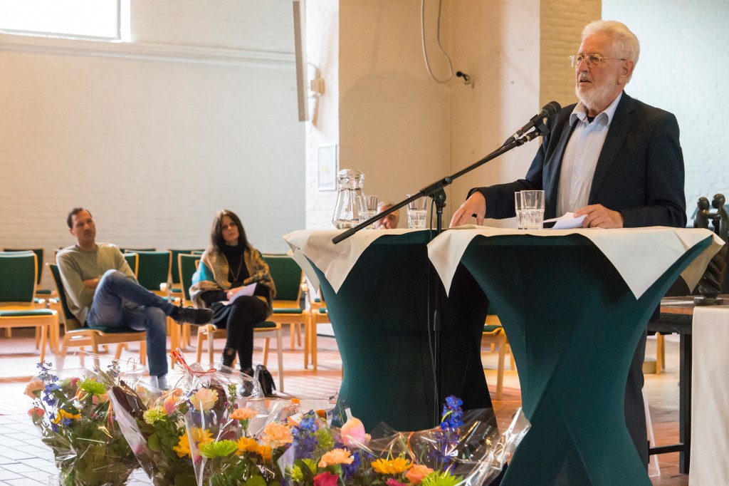Peet Valstar overhandigt elk van de drie gastsprekers en hun uitstekende moderator Titus een geschenkbon en een bos bloemen, als blijk van waardering en dank voor hun leerzame en inspirerende presentatie. Dit wordt onderstreept door een eveneens dankbaar applaus vanuit de zaal.