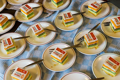 De feestelijke viering van 40 jaar Omduw, werd afgesloten met een gezellig samenzijn, onder het spreekwoordelijke genot van een hapje en een drankje.