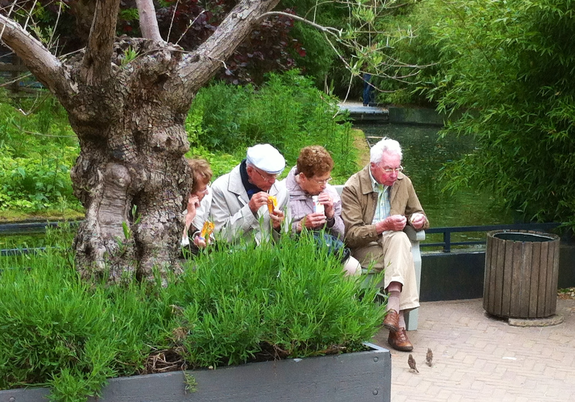 De man tast dankbaar toe, stopt mijn afval in de  mond